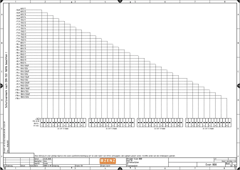 Im Verteilerplan kann nun die gesamte Klemmenreihe einfach dokumetiert werden, wie man am nachstehenden Muster sehen kann.